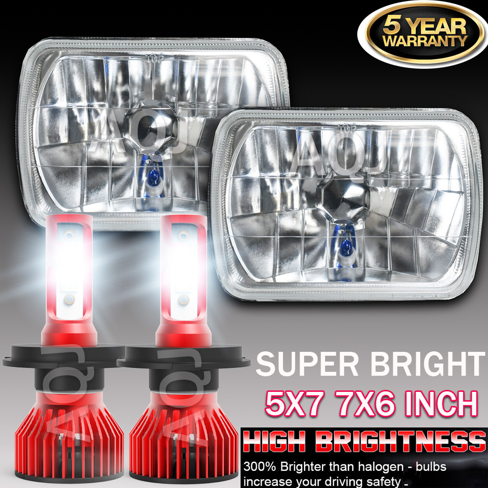 1 pair 7X6 5X7 glass lampshade +H4 LED super white presence headlights
