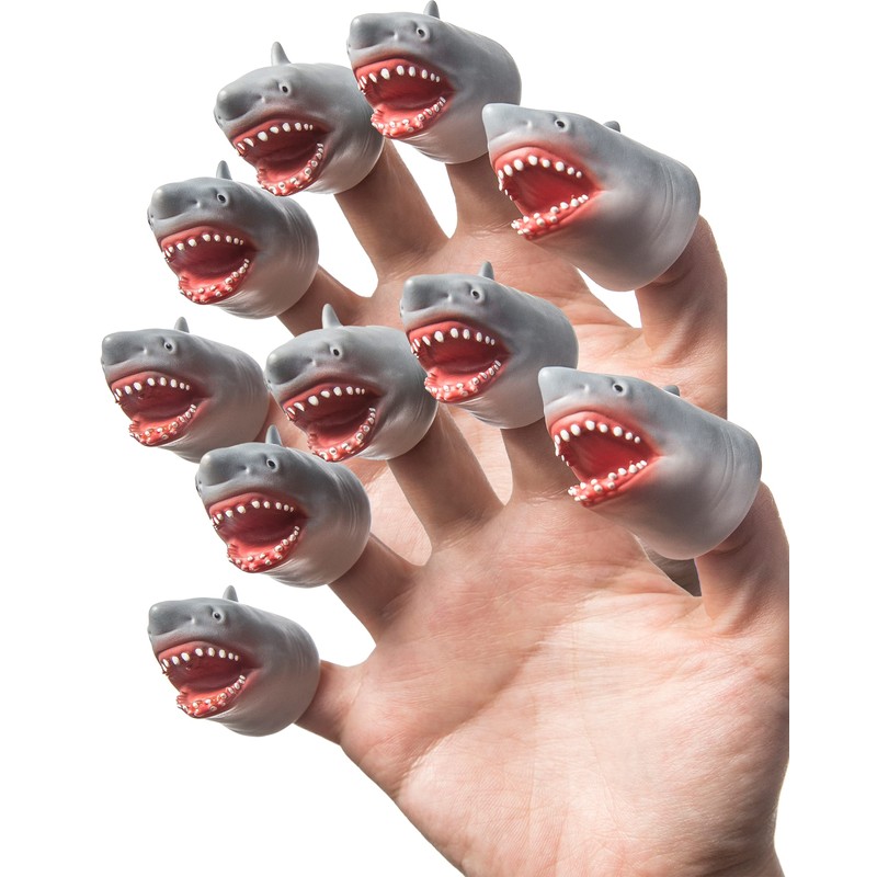 - Finger puppet set includes 10 shark heads. Finger puppet size is suitable for children and adults.