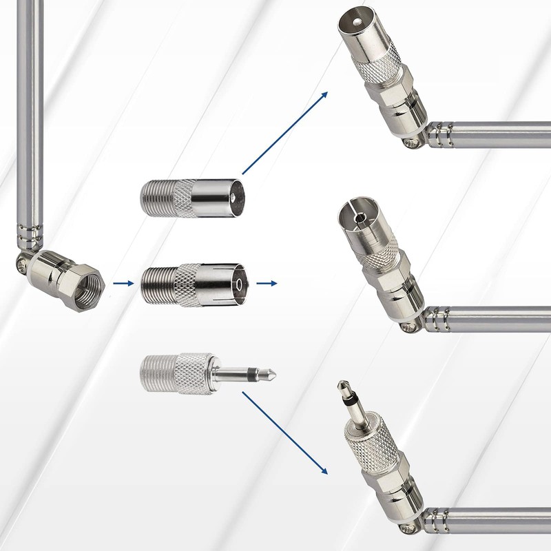 - Antenna Connector: F Type Plug Connector Connector Adapter: TV Female Socket Connector Adapter, 3.5mm Audio Plug Connector Adapter, TV Male Plug Connector Adapter