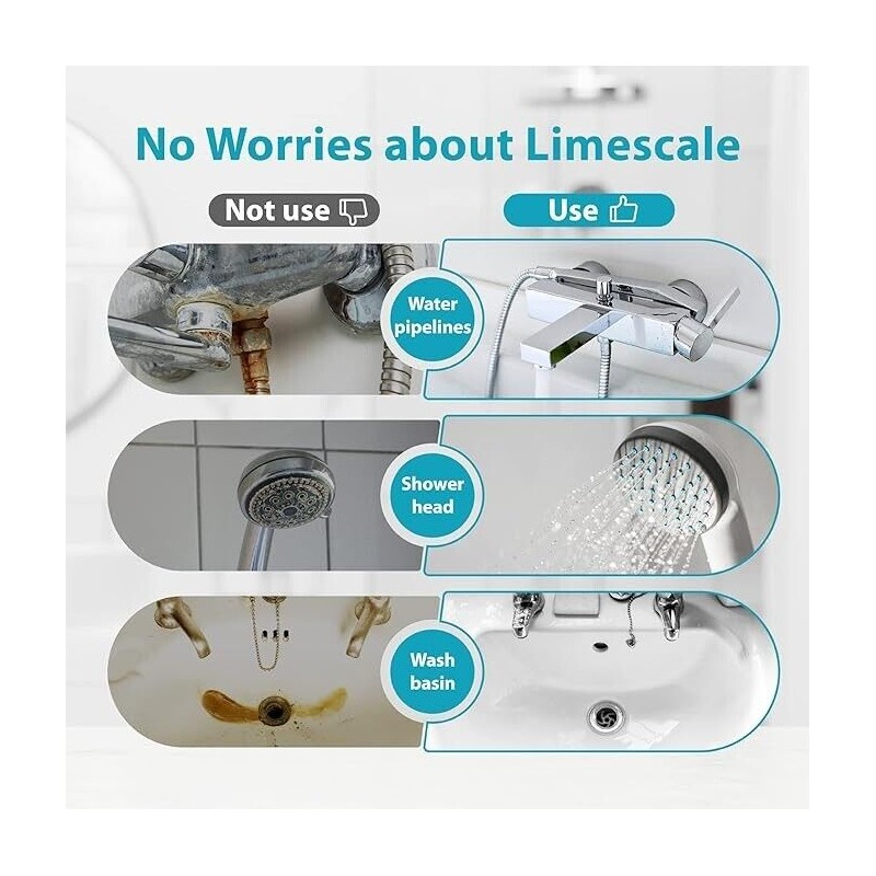 - 【Energy saving】Reducing limescale on heating elements extends lifespan of water heaters, washing machines, dishwashers, and other water-using appliances while also improving efficiency and saving energy.