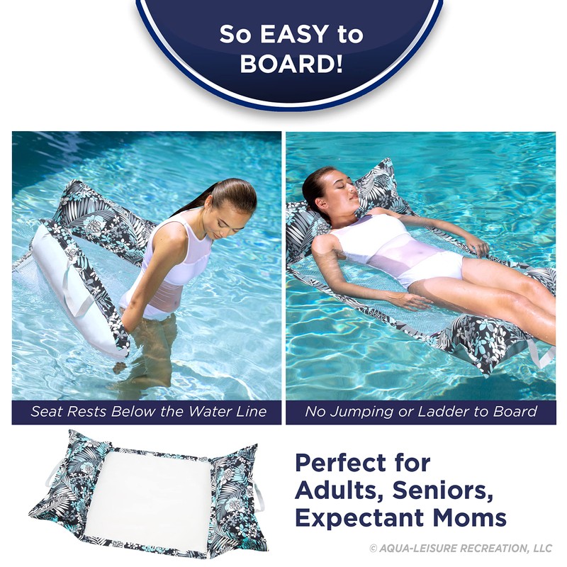 - MOST VERSATILE POOL FLOAT: 4-in-1 Design Converts to a Hammock, Chair, Drifter, or Exercise Saddle; US Patent No. 10011330