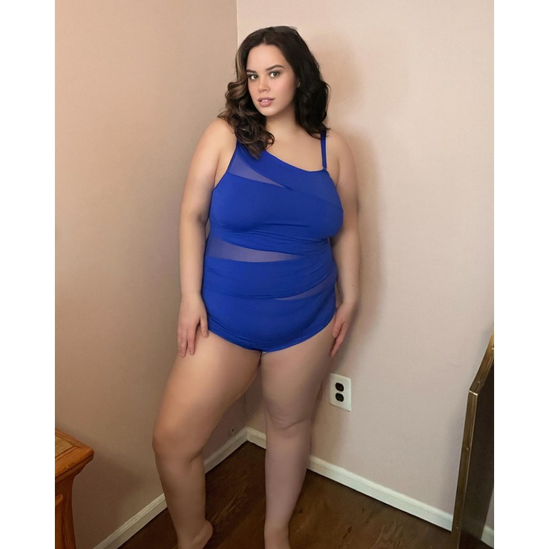 - Trajes de baño de malla de talla grande: este traje de baño azul real de talla grande cuenta con patchwork de malla y un estilo transparente y hueco. Es suave y elástico, por lo que es adecuado para la playa, piscina, aeróbicos acuáticos y lunas de miel.