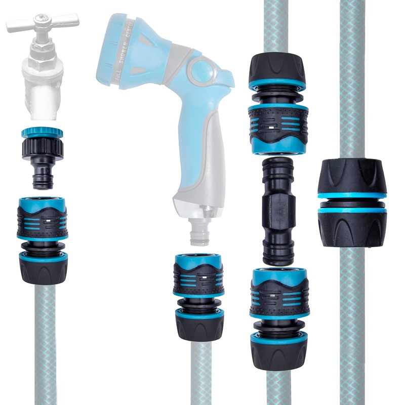 Aqua Flow Hose Pipe Connector Set - Premium 5-in-1 Hose Connecter Ideal for Universal 1/2" UK Hose Pipes, Made from Durable ABS Plastic, Quick Connect, Leak-Proof, Versatile, and Easy to Use
