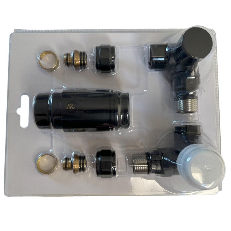 • Included in the set - The set contains the following elements: valve - 1 pair, thermostatic head - 1 piece, connections - PEX 16 mm - 1 pair, connectors - copper 15 mm - 1 pair