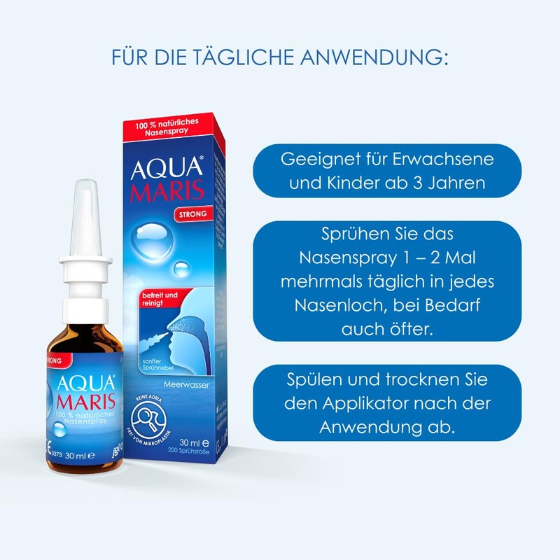 Aqua Maris Aqua Maris Strong 30 ml, 100% nat1rlich, Meerwasser abschwellendes Nasenspray I Linderung bei verstopfter Nase I Erwachsene, Kinder, Schwangere und Stillende M1tter