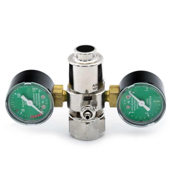 A high quality and reliable pressure regulator from European production for supplying aquariums with CO₂. This AQUA-NOA pressure regulator is equipped with a pressure gauge to display the bottle pressure. The bottle pressure indicator indicates when to change the bottle. The working pressure is firmly set to 2 bar and cannot be changed. The integrated fine needle valve is used for fine adjustment of the CO₂ quantity and thus the number of bubbles.