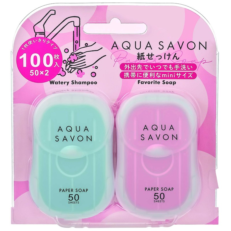 Aqua Savon Paper Soap Set B (Watery Shampoo Scent, Favorite Soap Scent), 50 Sheets x 2, Soap