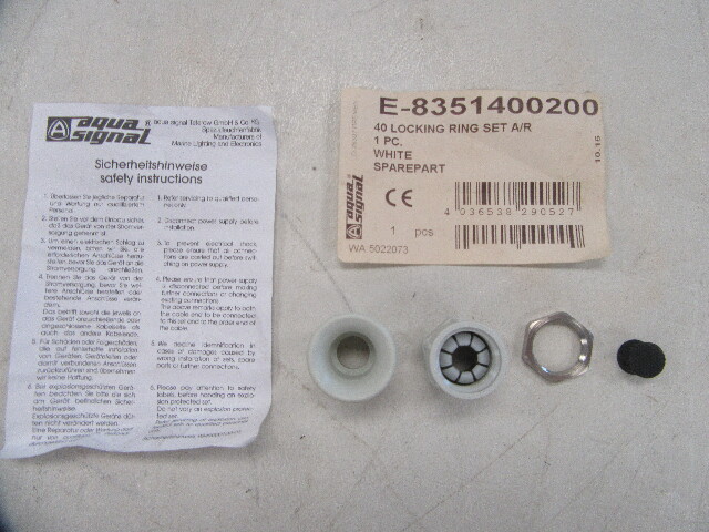 I am selling an Aqua Signal 40 series locking ring set, part #E-8351400200. This item is new and comes as shown. For more information on this item please contact a dealer in your area. (MO / 79 B / 9099770) / LH Shipping cost is for the continental United States only (lower 48 States). For shipping outside this area, please inquire about shipping costs before bidding.