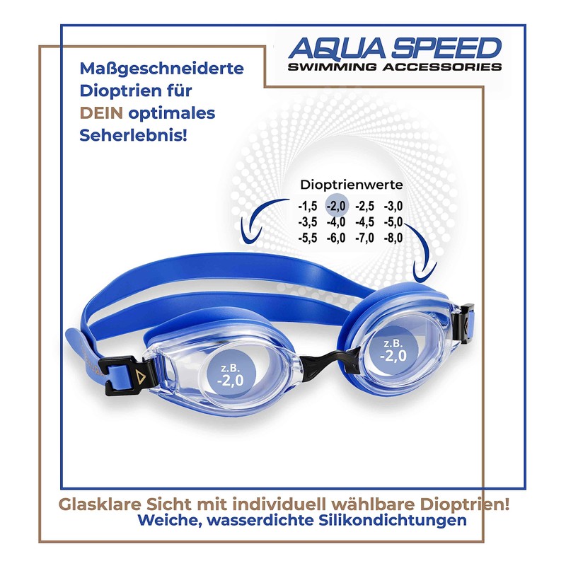The Aqua-Speed Lumina has optical lenses with diopter values from -1.5 to -6.0 dioptres (in 0.5 gradations) and -7.0 and -8.0.