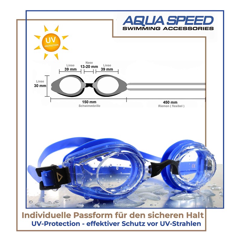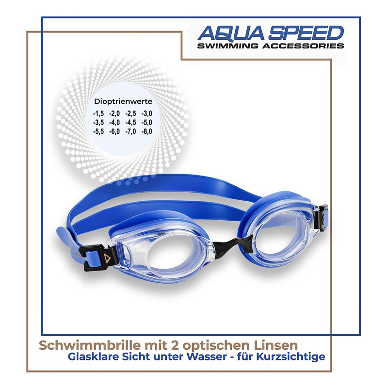 Aqua Speed Lumina optische Schwimmbrille für Triathlon Wettkampf Training | Erwachsene & Teenager Schwimmbrillen mit Sehstärke -3.5 - UV Swim Goggles | Schwimmtraining - Blau - Ungetönt