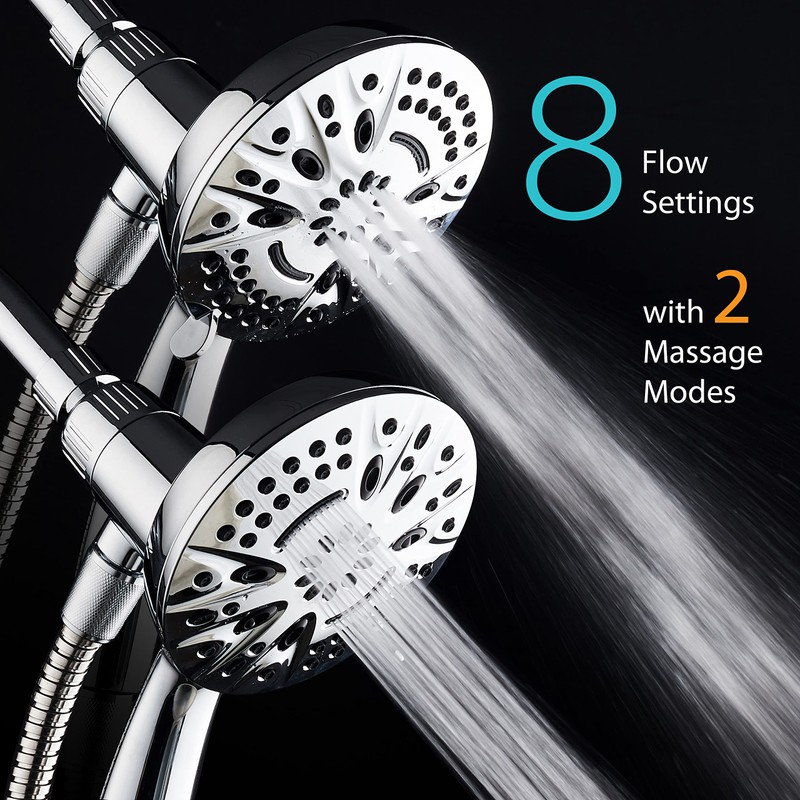 - 8 LUXURY FLOW SETTINGS - Use Power Rain, Pulsating Massage, Hydro-Mist, Dual Jet, ON/OFF Pause mode and three mixed settings. Developed in USA by top American showerhead experts, this new Aquadance Magnetic Hand Shower was designed to exceed top US quality and performance standards and deliver unmatched High-pressure Shower Spa Experience. And its premium spot-resistant metal-plated finish will never crack, chip or fade.