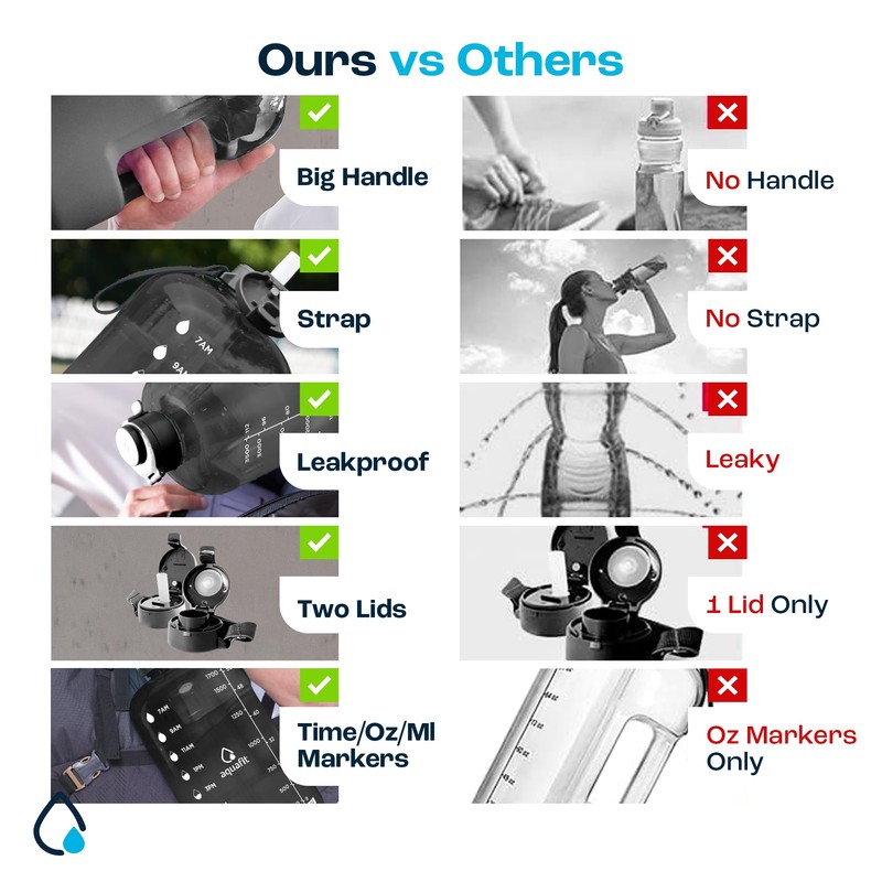 - Track how much you drink - Our half gallon water bottles come with clear time markers on the side so you can see your daily water intake and stay on track to meet your health and fitness goals.