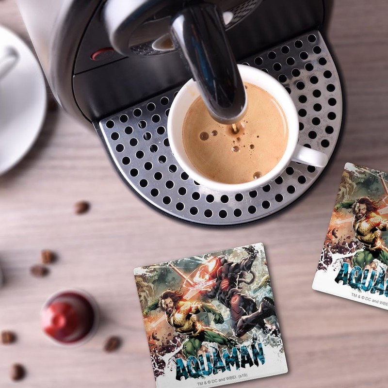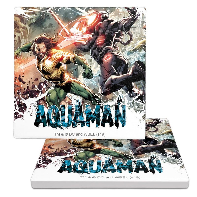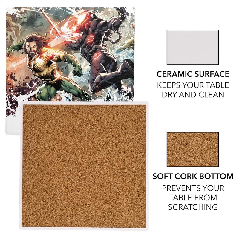 Aquaman Movie Aquaman vs Black Manta Square Ceramic Coasters, Set of 2, 3.9", Cork Base