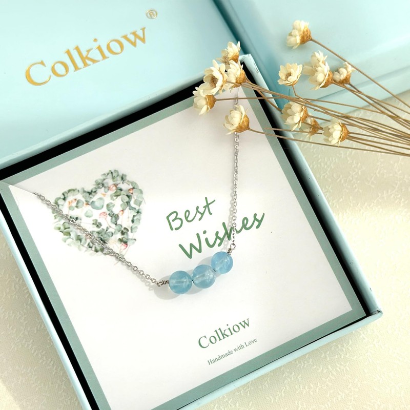 - 【Real Natural Gemstone】Colkiow uses natural aquamarine crystal with a diameter of 6 mm. Each bead is slightly different in color, pattern and shine. This is the characteristic of natural gemstones, and it is also your special mark.