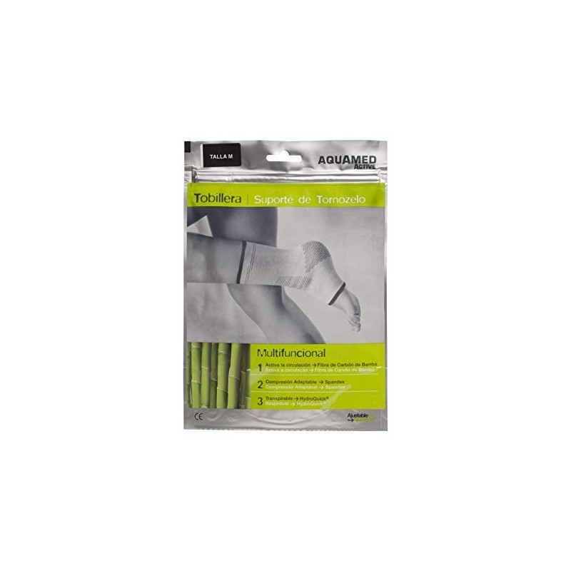 AQUAMED Active Ankle Brace - Elastic Support, Bamboo Charcoal Fiber, Joint Pain Relief, Washable, Size M