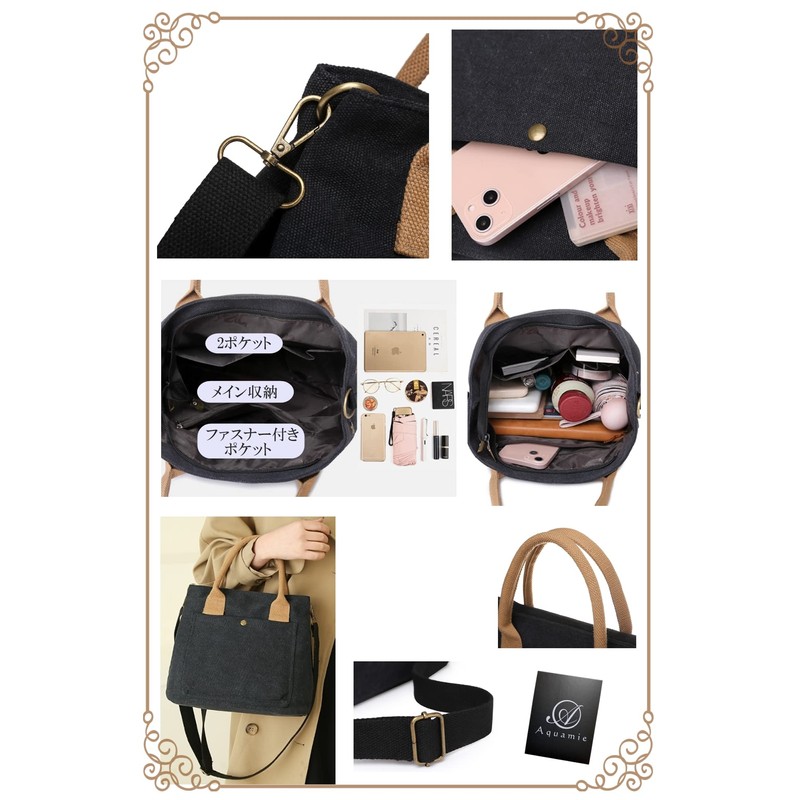 Aquamie Tote Bag, Shoulder Tote, Crossbody Bag, Canvas, Small Size, Horizontal, white