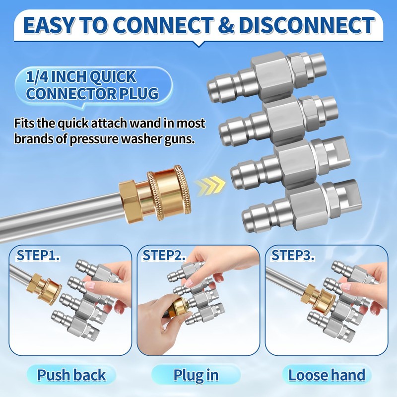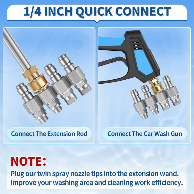 - 【Application】Our pressure washer tips are ideal for cleaning courtyards, cars, trucks, high walls, and other surfaces, ensures efficient and versatile cleaning.