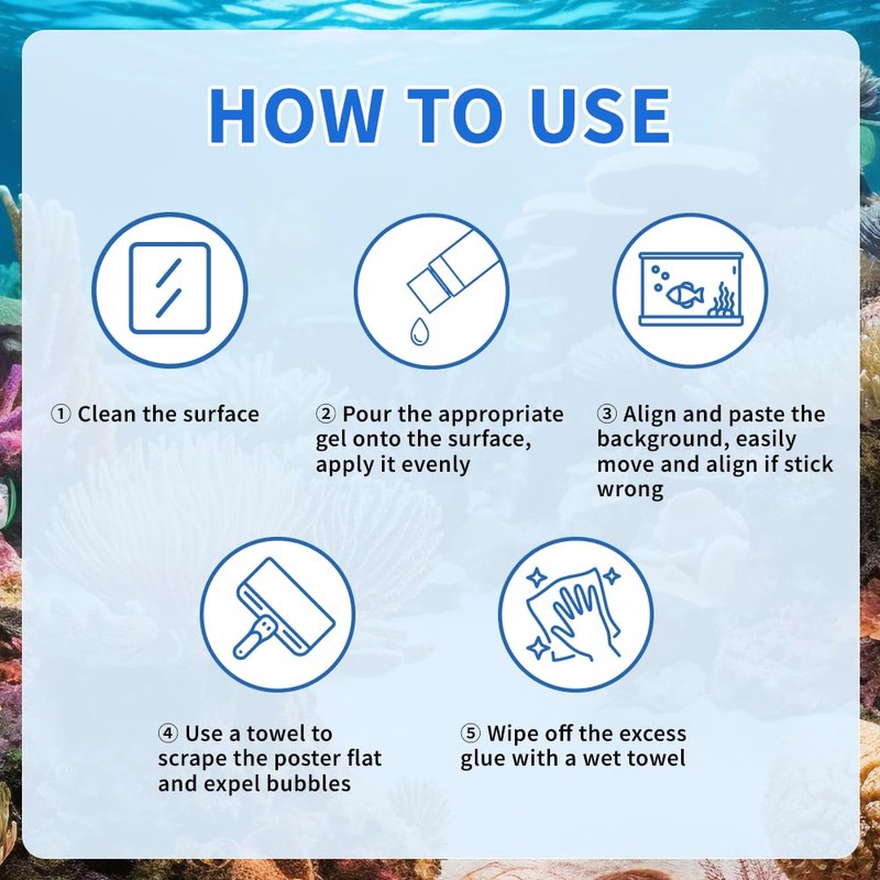 GRLELOU Aquarium Background Gel - 1 OZ (30ml), Aquarium Glue for Fish Tank Background Solution, Fish Tank Poster Glue, Fish Tank Glue, Clear Glue, No Odor, Easy to Apply, Clear and Bright