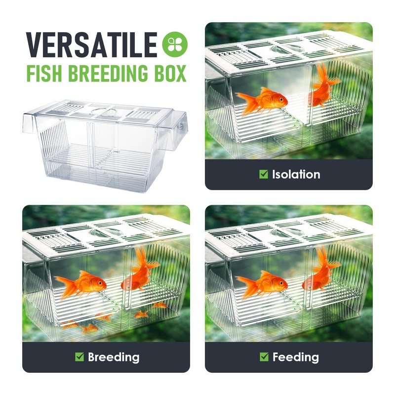- 【Safe Breeding & Isolation】This box provides a secure environment for separating pregnant fish, injured fish, or aggressive species. It's perfect for fry protection and functions effectively as part of your breeding tanks for fish setup