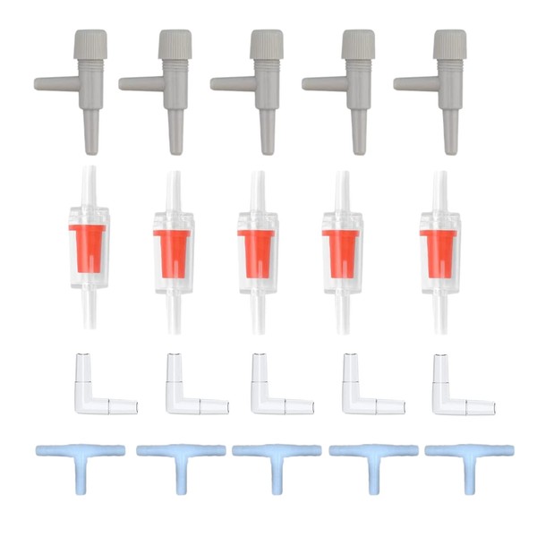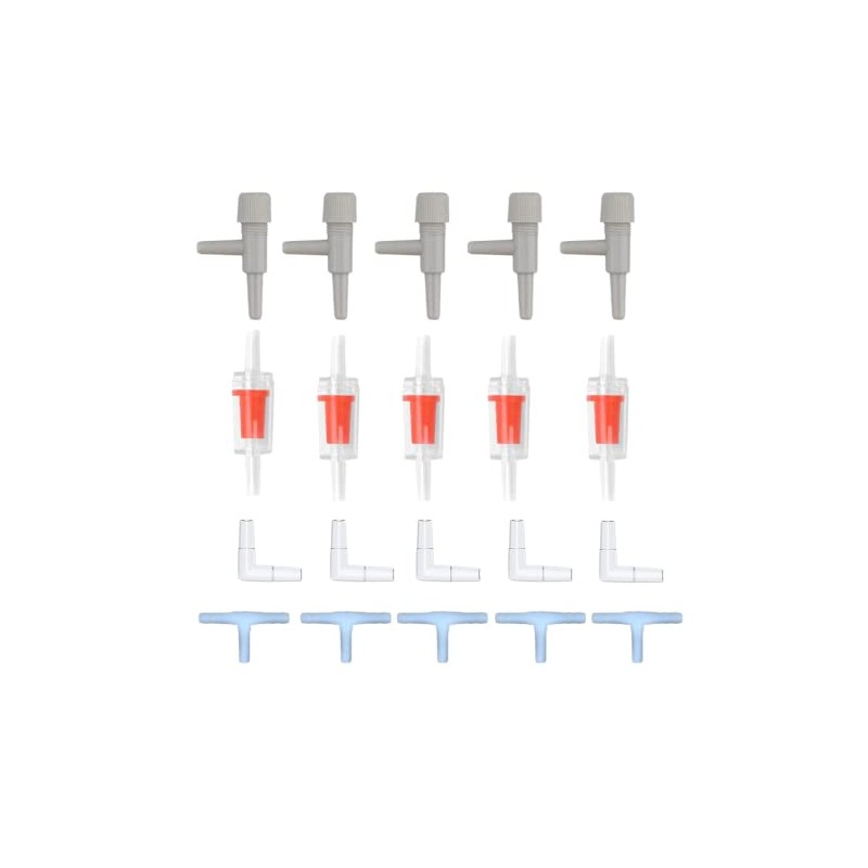 - 4 * Check Valves,4 * Air Flow Control Valve, 4 * T-connectors, 4*right angle connectors