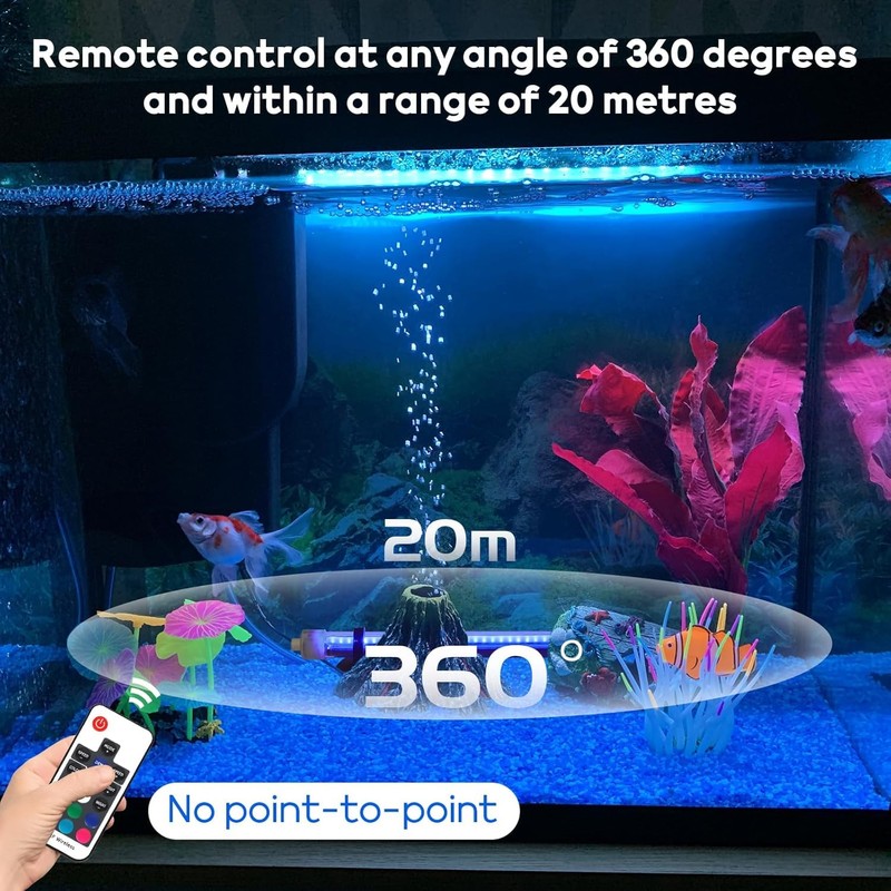 • Aquarium lighting with remote control and RGB colour changing: thanks to the IP68 waterproof rating and durable design, the lamp can withstand water and moisture. Perfect for tropical fish aquariums for an impressive light show underwater.