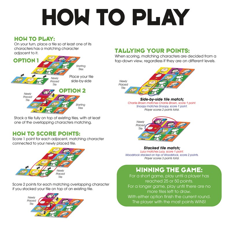 - IT'S NOT YOUR NORMAL DOMINO GAME: Enjoy this entertaining Dominots tile game with friends and family as you play alongside your favorite Peanuts characters including Snoopy and Charlie Brown with this Peanuts inspired board and domino tiles