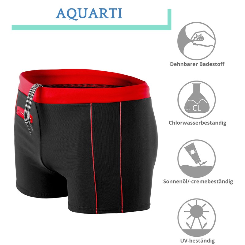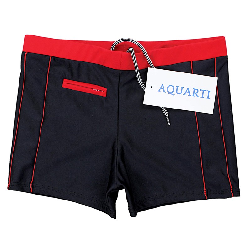 Aquarti Men's Swimming Trunks Short with Contrast Piping, 010 Black/Red