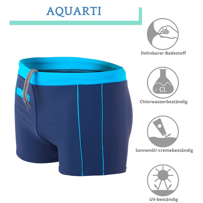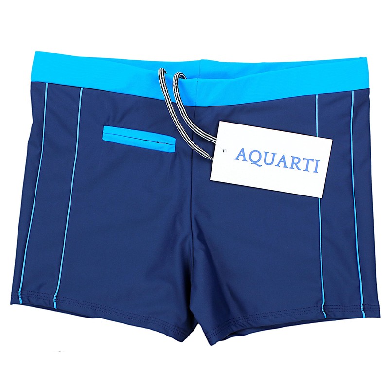 Aquarti Men's Swimming Trunks Short with Contrast Piping, 010 Dark Blue/Blue