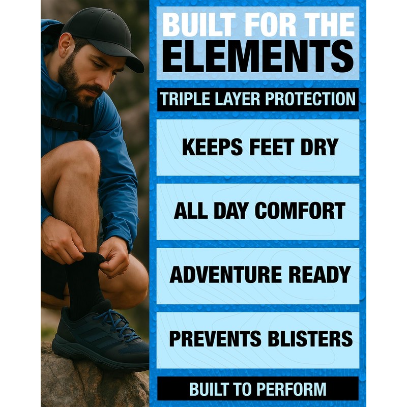 - Ultimate Waterproof Protection - Stay dry no matter the weather with these waterproof socks. Designed with a triple-layer construction, making them ideal for hiking, running, and any outdoor adventure.