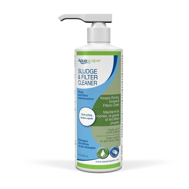 Aquascape® Sludge and Filter Cleaner helps to maintain a strong biological balance in your pond while reducing waste and decay and cleaning rocks, gravel and filter pads. Sludge Cleaner is packed full of 5 strains of bacteria, as well as marigold and humic acid to improve the environment for fish.