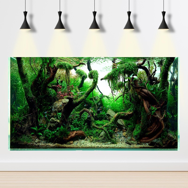 Aquascaped Freshwater Aquarium Background with Neon Fish Live Plants,Frodo Stones and Redmoor Roots Terrarium Background Jungle Style Aquascape Aquarium Backdrop Fish Tank Decor Vinyl 72x24in
