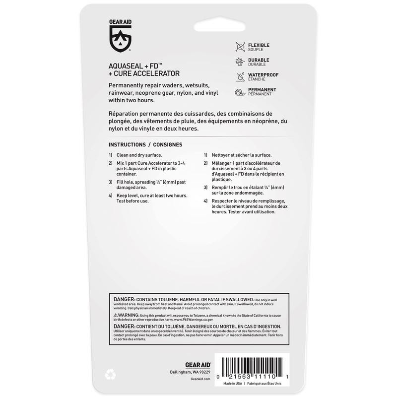 GEAR AID Aquaseal FD Flexible Durable Repair Adhesive and Cure Accelerator, 0.75 oz, 2 Pack