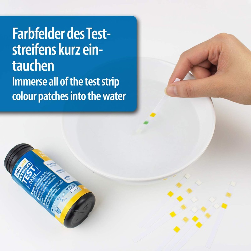 - Contents: 100 pieces. Long plastic water test strips allow for comfortable use. High-quality water test for pool care with precise colour matching.