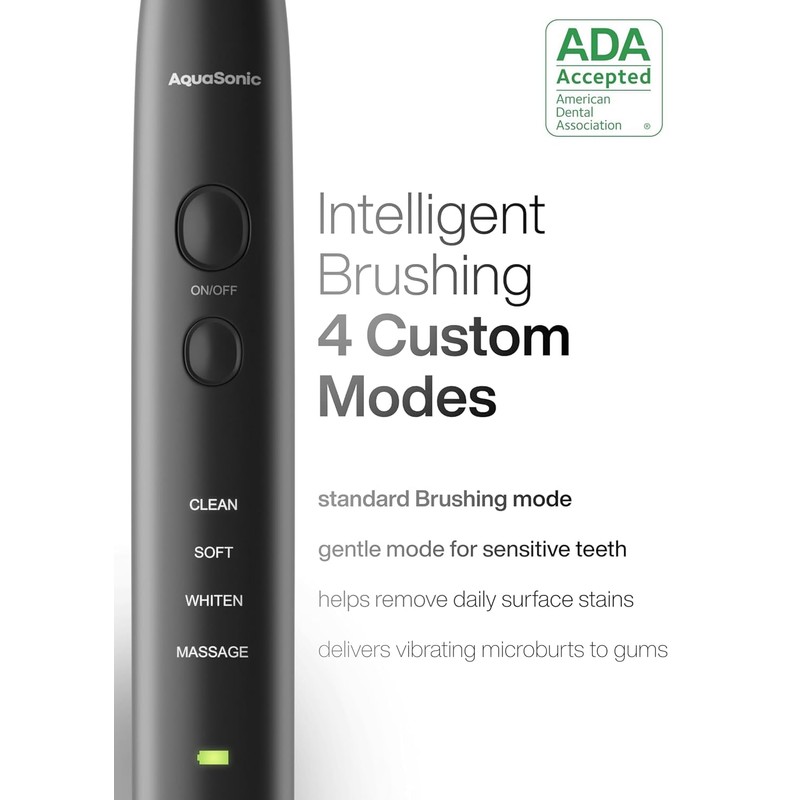 Aquasonic Black Series Ultra Whitening Toothbrush – ADA Accepted Electric Toothbrush- 8 Brush Heads & Travel Case – 40,000 VPM Electric Motor & Wireless Charging - 4 Modes w Smart Timer
