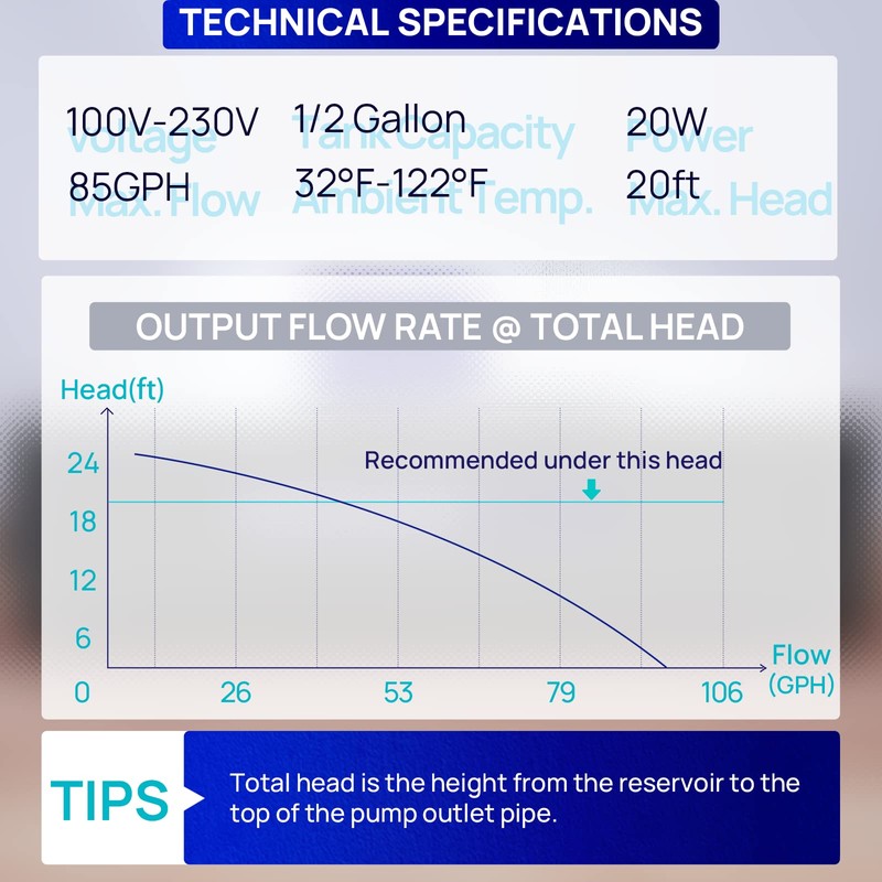 - Compact & Durable: Vertical centrifugal pump design with removable 1/2 gallon reservoir, easy to operate and maintain. Solid plastic construction ensures abrasion and corrosion resistance. Five 1' inlet ports allow for connection to multiple equipments. 2/5' O.D. barbed outlet with built-in check valve fits 1/4' to 3/8' tubing. Easy to install