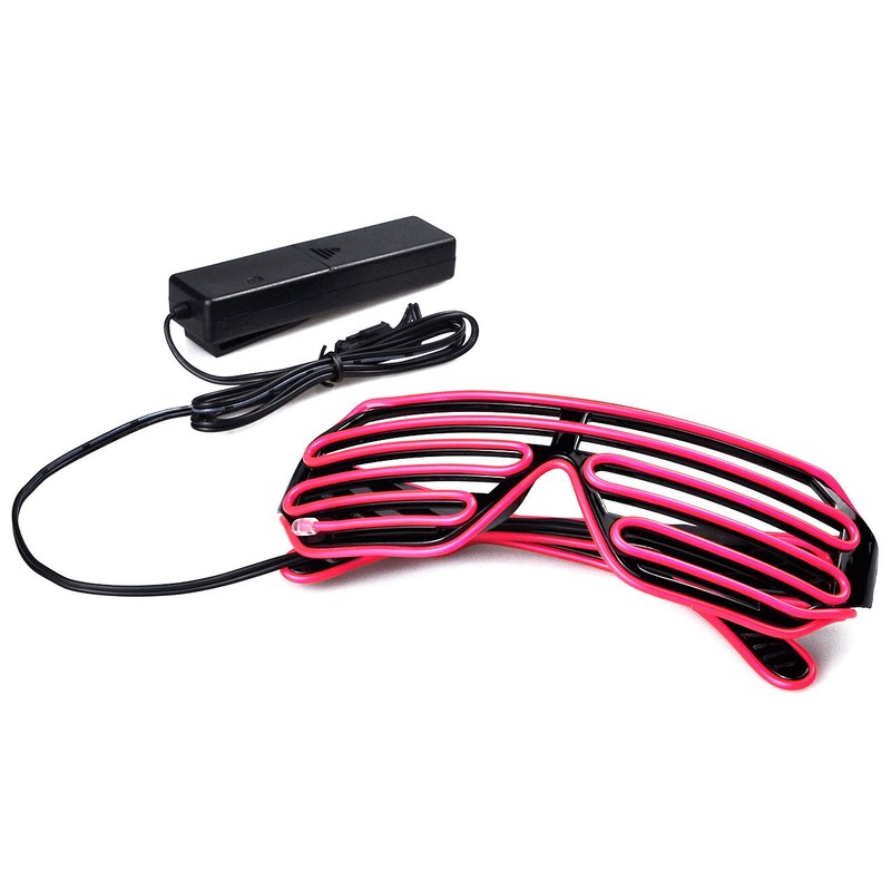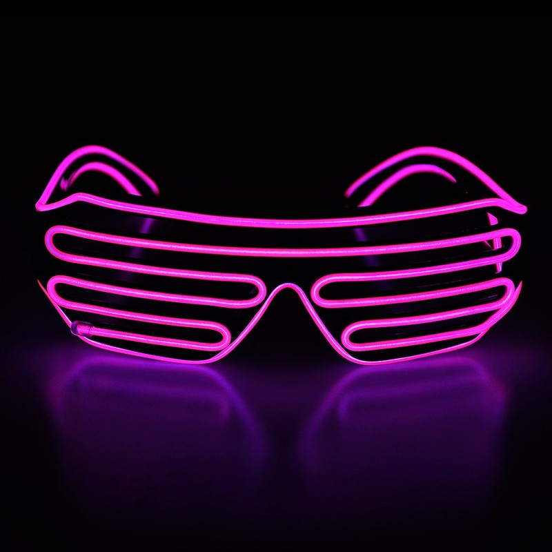 Aquat Light Up Shutter LED Neon Rave Glasses El Wire DJ Flashing Sunglasses Glow Costumes Voice Activated For 80s, EDM, Party RB02 (Pink, Black Frame)