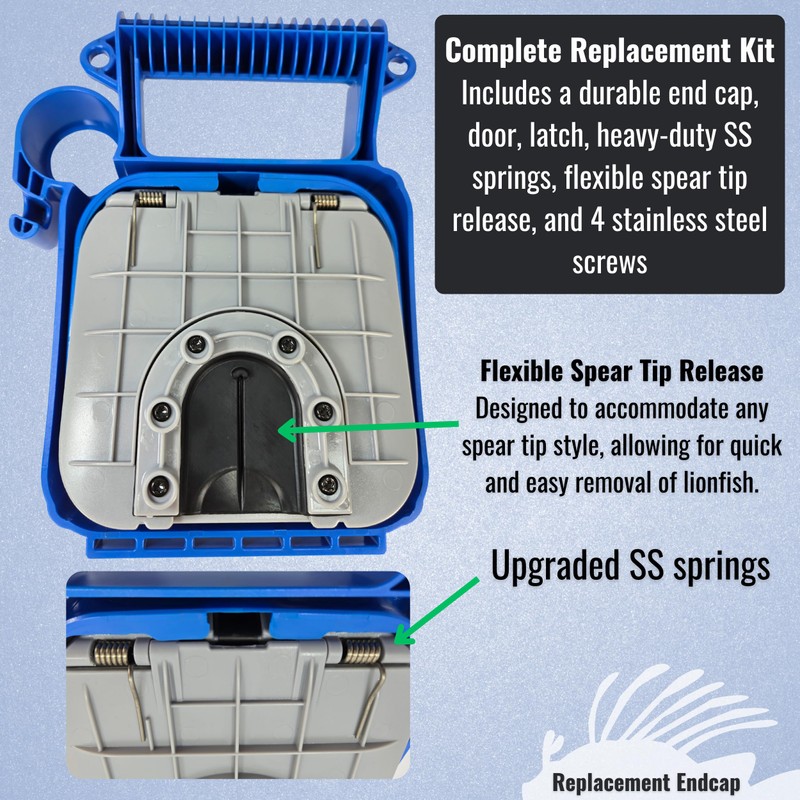 Aquatic Hunt Replacement Lionfish Locker Handle End Cap Assembly Includes Door, Springs, Latch (Blue)