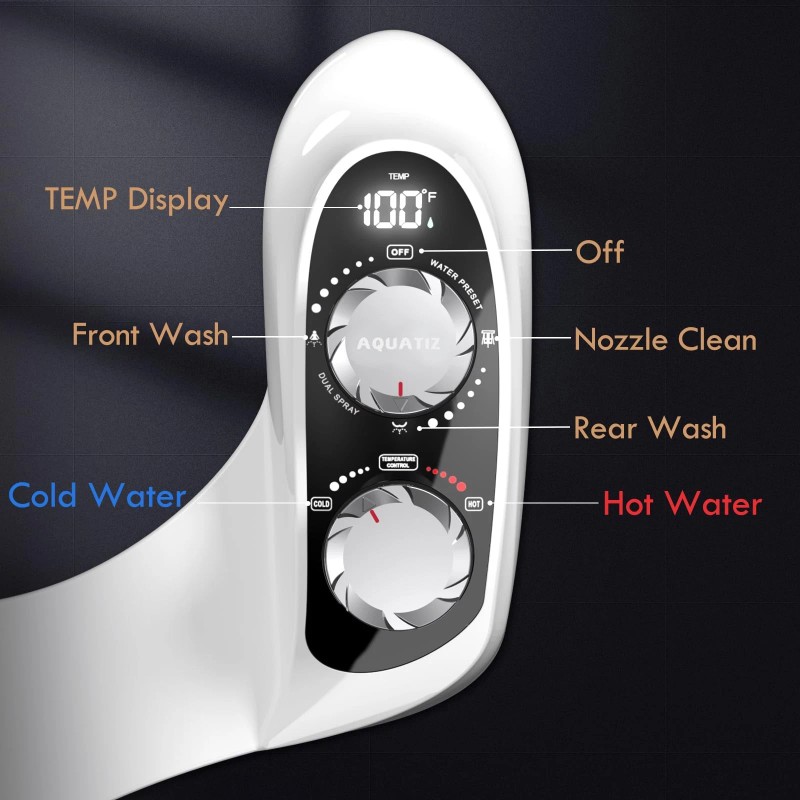 Aquatiz Non-Electric Bidet Attachment for Toilet Seat, Dual Temperature Rear and Femi...
