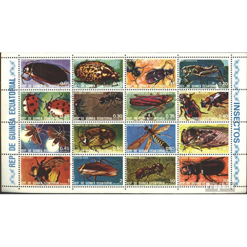 Äquatorialguinea 1370-1385 Sheetlet (complete.issue.) fine used/cancelled 1978 Insects (Stamps for collectors) Invertebrates Other (insects, snails, bees…)