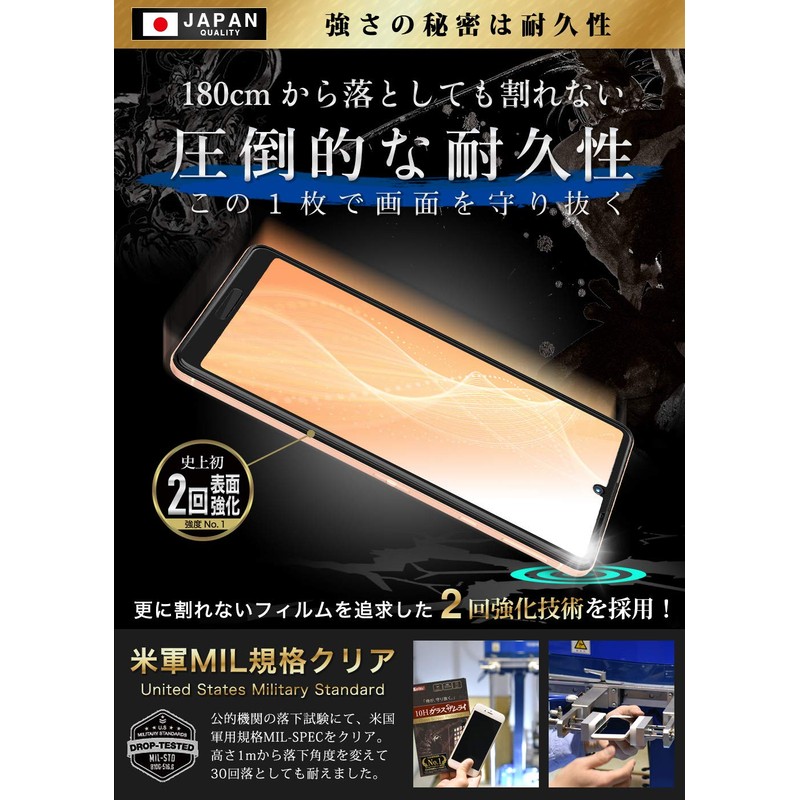 - 【ナイフでも傷つかない】現在市場では最も硬い10Hの表面硬度。画面割れ”ゼロ”を目指し、カッターでも傷つかず、180cmから落としても割れない耐久性を実現