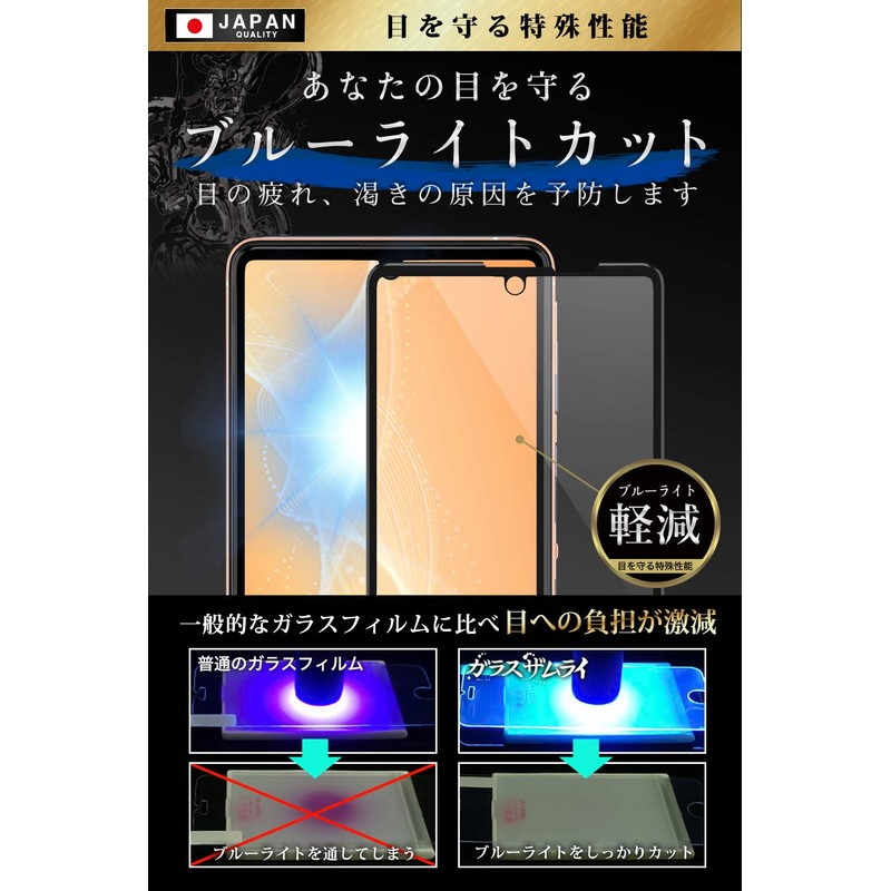 ガラスザムライ AQUOS Sense4 用 ガラスフィルム SH-41A 用 ブルーライトカット 全面保護 硬度 10H 強化ガラス 保護フィルム 米軍MIL規格 288-blue-3d-bk