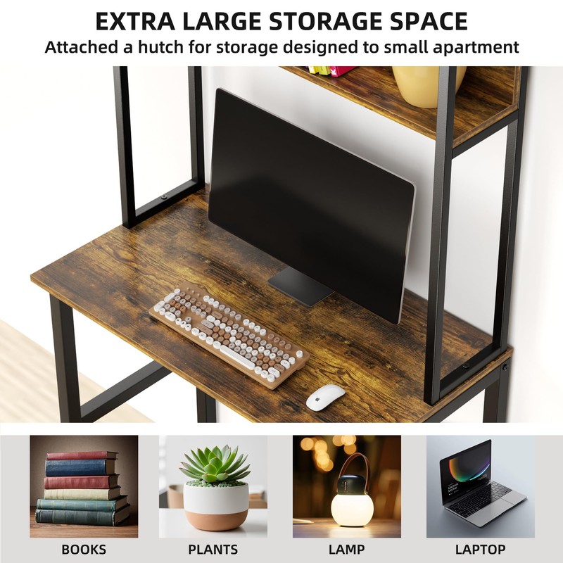 - 【Fit for Small Spaces】The compact 31.5-inch desktop provides ample space for work and study in your apartment, perfectly fitting your laptop or PC monitor. The double-layer upper storage shelf provides ample space for books, plants, papers, documents, crafts, family photos, etc.