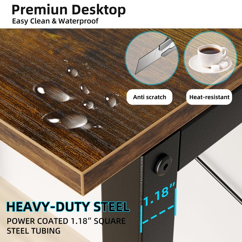 - 【Sturdy and Durable】Our desk with hutch features a 0.7-inch-thick tabletop and FSC-certified wood panels, providing a waterproof, easy-to-clean, and scratch-resistant surface. The heavy-duty metal frame (1.18" x 1.18") is finished with a rust-resistant powder coat, providing exceptional stability and durability. Adjustable leg bolts help keep the desk level on uneven floors, ensuring a reliable workspace for years to come.