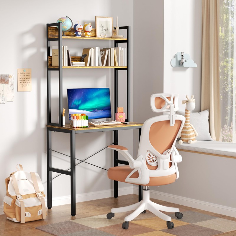 Aquzee 31 Inch Desk Hutch, Teen Desk with Shelves, Study Desks with Storage, Computer Desks for Small Spaces, Kids, Student, Space Saving, Easy Assemble, Rustic Brown