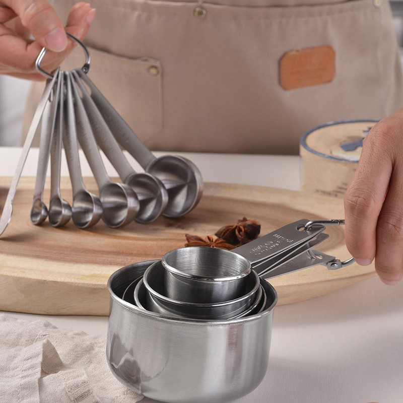 - [Material de primera calidad] Hecho de acero inoxidable duradero, este juego de taza y cuchara medidoras está diseñado para durar y es fácil de limpiar, lo que garantiza un uso duradero sin daños.