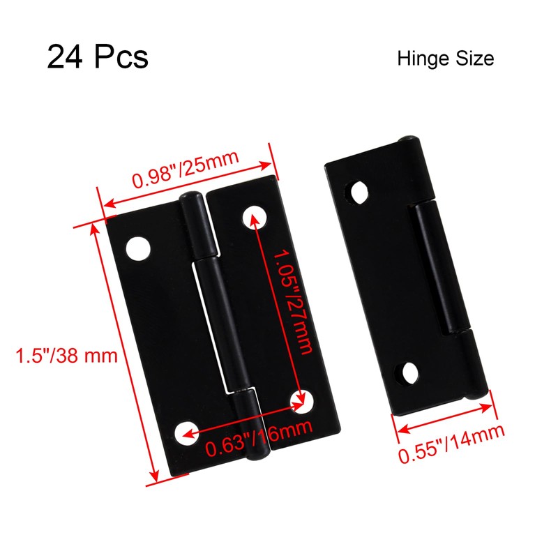 - 【Assorted Sizes】: With each hinge measuring 38 x 25mm (1.5" x 0.98") when open, our pack of 24 ensures you have enough hinges to complete your project. Experience the perfect fit and functionality for all your woodworking needs.