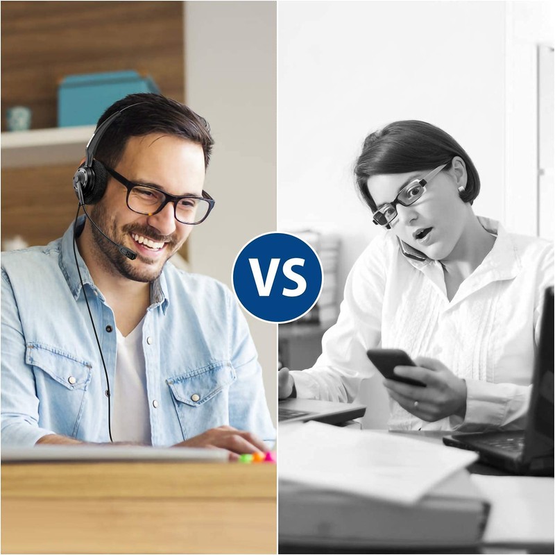 - Más cómodo: auriculares RJ para teléfono de oficina súper ligeros con diadema ajustable para adaptarse a todos los tamaños de cabeza, almohadilla de piel sintético suave de alta calidad y mejora la comodidad de uso durante todo el día. Compite con los auriculares de teléfono resistentes Plantronics o Jabra para centro de llamadas, telemarketing y oficina.