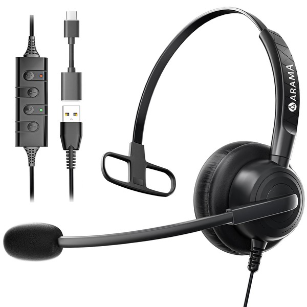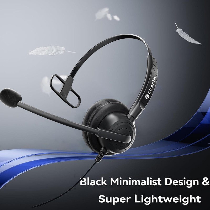 - 【Lightweight & Rotatable Mic Boom】Arama USB headset is designed for a lightweight comfort-fit , no extra burdens when put it on your head. The 330°flexible mic boom can be adjusted easily and suits perfectly both on your left or right side ear.