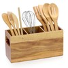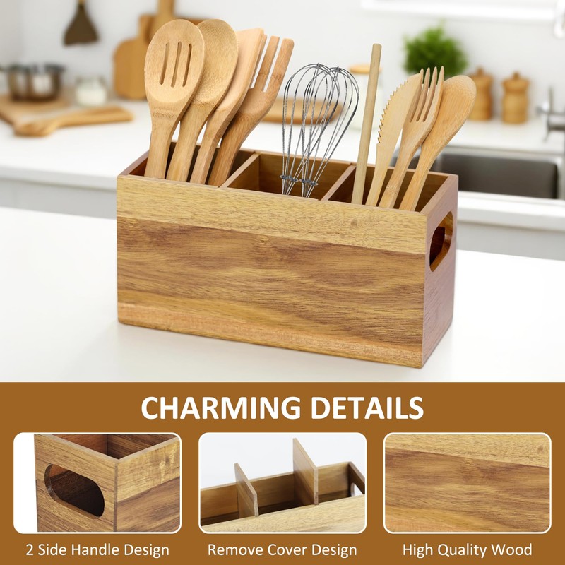 Aramanara Large Wooden Utensil Holder, Rustic Kitchen Cutlery Holder, Wooden Utensil Organizer with 3 Compartments for Kitchen Countertop