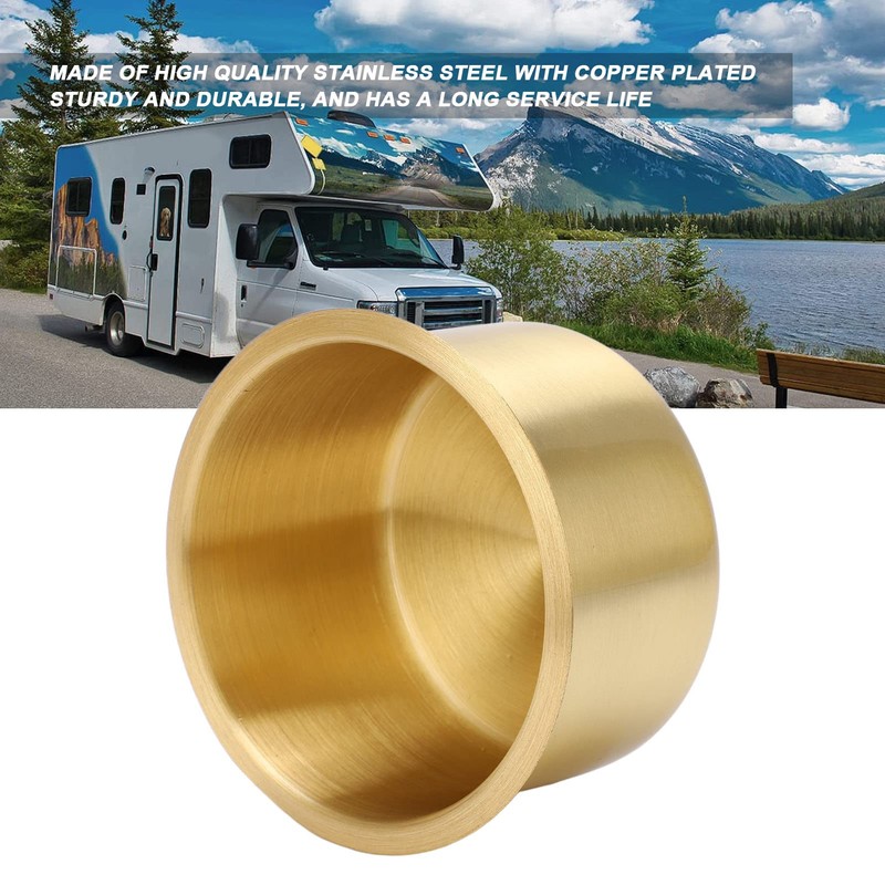 Aramox Portavasos para Barco, Yate, RV, Mesas de Póquer, Sofás Funcionales - Acero Inoxidable con Baño de Cobre - Dorado